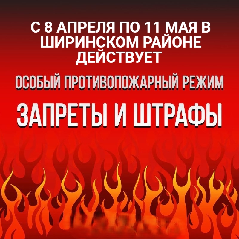 В соответствии с Постановлением Правительства Республики Хакасия № 151 от 02.04.2026 года на территории Ширинского района с 8 апреля по 11 мая вводится особый противопожарный режим. Этот режим вводится органами власти в периоды повышенной пожарной опасности для предотвращения возникновения и распространения пожаров.